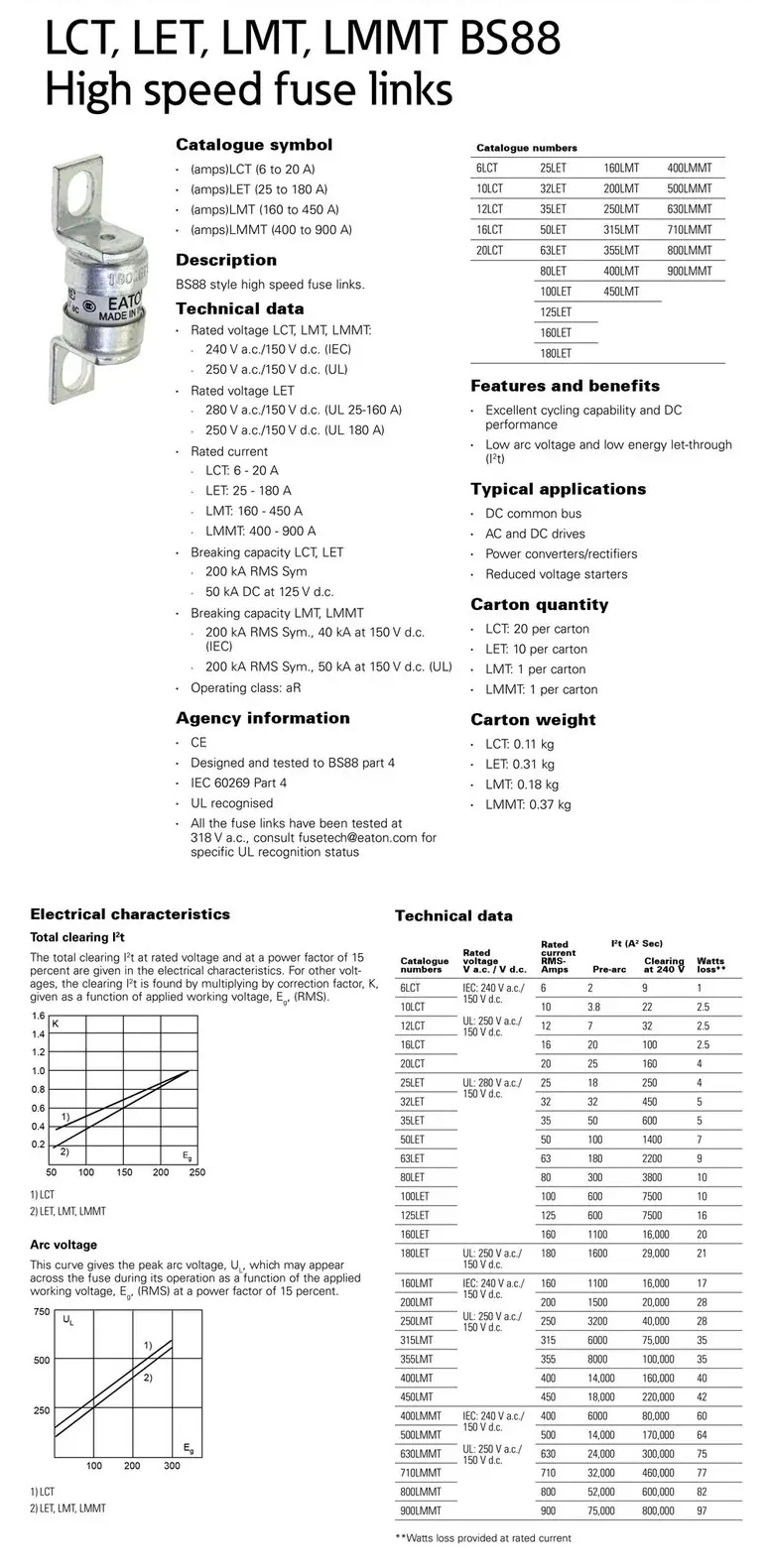 BUSSMANN BS88系列 英标快速熔断器 240V 6-900V