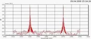 在遭受压力,光纤传感器经受点横向负载时,会发生双折射现象。 这意味着将出现新的峰(两个峰将同时共存),并且其偏移也可以被量化。