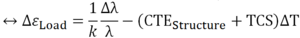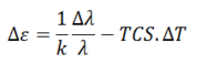 固定到承受负载和温度的结构的传感器的波长变化由下式给出: